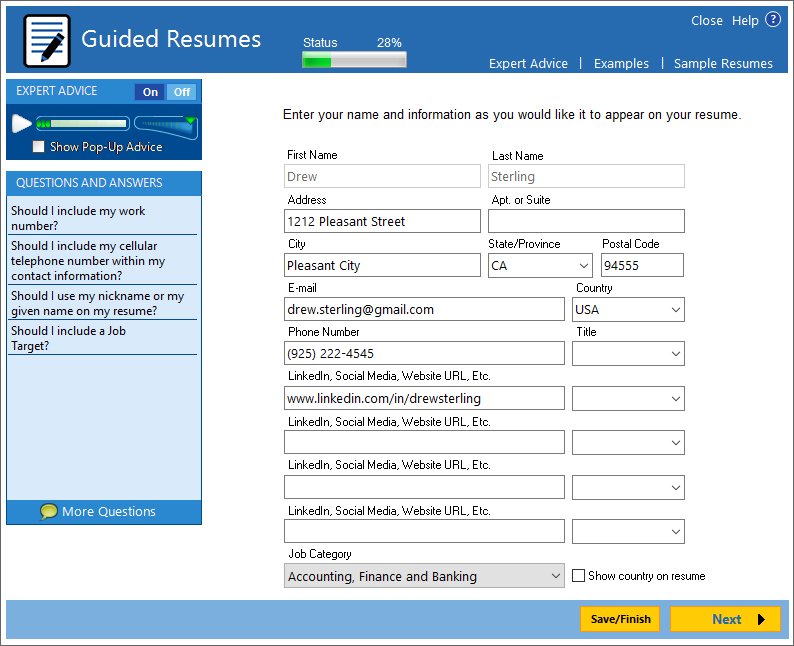 - Start with a Professional Sample Resume Select a professionally-written resume from 1,250 samples for nearly every career. Customize it with your own information to create a quality resume!
