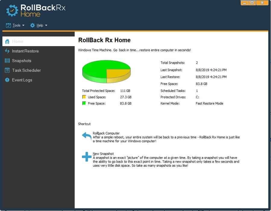 - Day Zero Recovery: In the event of a ransomware attack or catastrophic OS failure (BSOD), you can boot into the RollBack Rx sub-console (before Windows loads) and revert to a clean snapshot from minutes or hours ago.